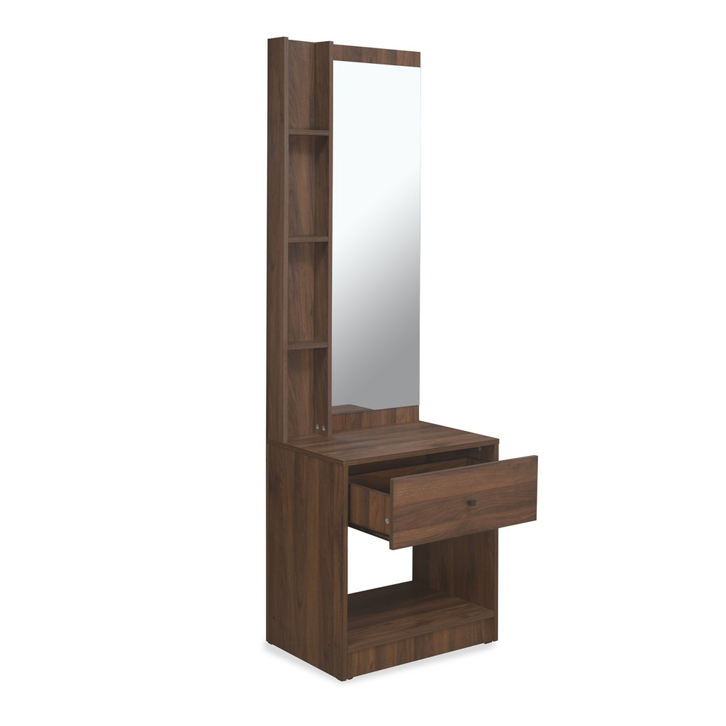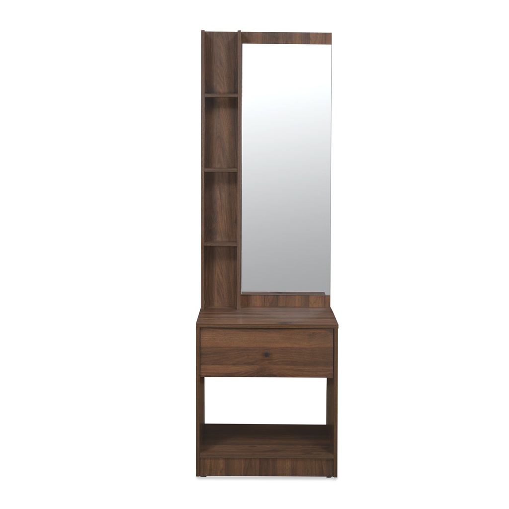 A spot where you can spend hours! The Bergen Dresser features a mirror; wenge finish color theme and open and closed racks to store essentials. Made with high quality engineered wood, the dresser is compact enough to fit into any corner in the bedroom. The contemporary design and wenge finish lends itself well to urban and contemporary home d?cor styles. What is more, it can easily blend into the existing furniture and d?cor of all kinds of spaces. Make it a part of your lifestyle. You know where you can be found, at all times.