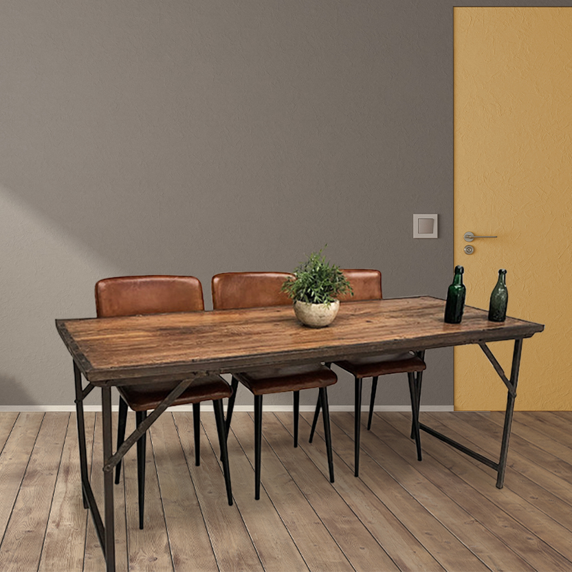 Reclaimed antique table top with steel folding legs. Cracks and variations are to be expected in the reclaimed top and