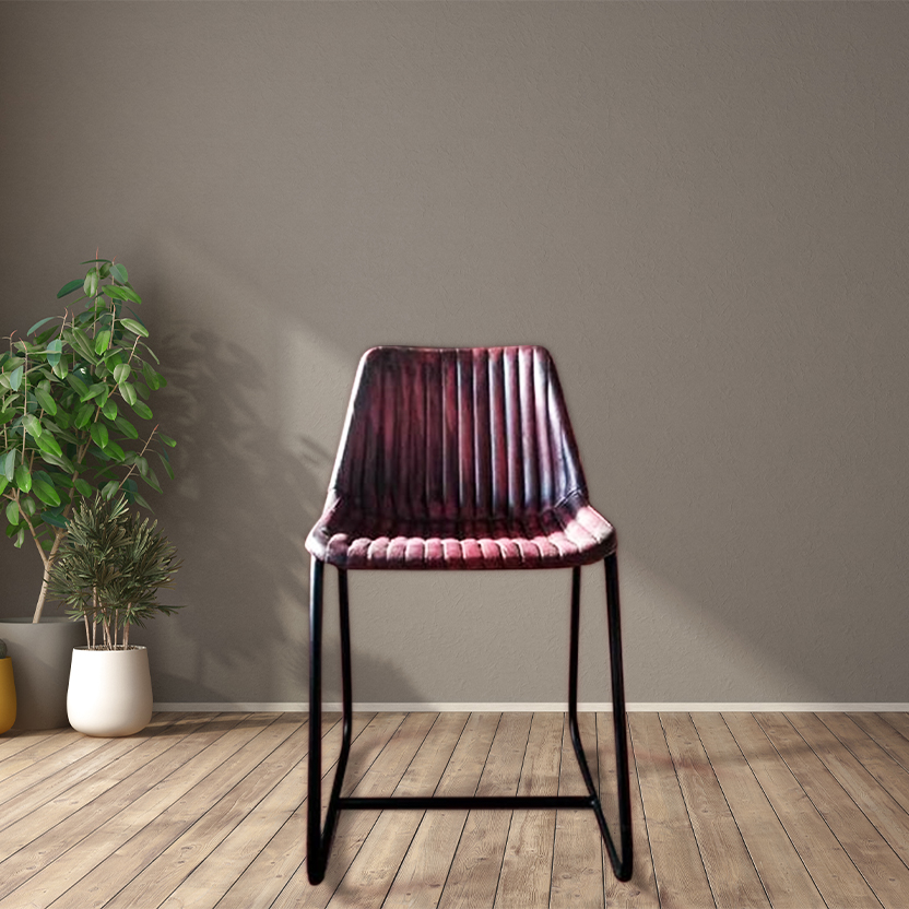 The Ivy side chair upholstered in vintage-style leather on a 16mm tube frame with a black paint finish. Height: 850
