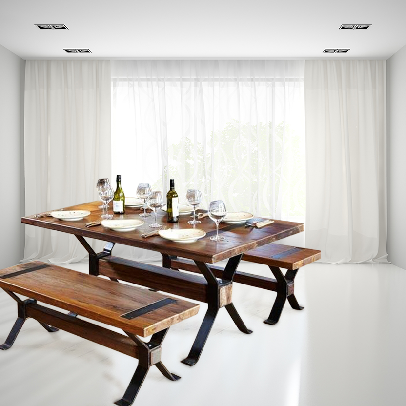 Providence bench with a black steel frame. Featuring a natural and sustainable mango wood seat in an antique finish.